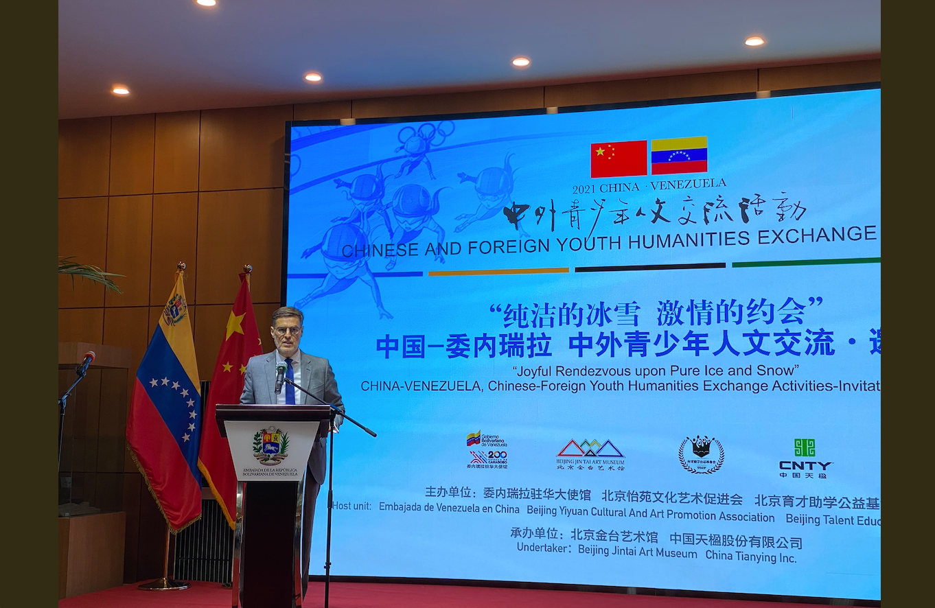委內(nèi)瑞拉駐華大使菲利克斯在活動致辭中表示,此次展覽旨在推動中委兩國兒童與青少年的人文藝術(shù)交流,并以此為契機傳播努力、守紀(jì)、奮斗的體育精神。菲利克斯大使邀請來賓“共同見證中委兩國兒童和青年的優(yōu)秀才華與非凡的創(chuàng)造力,并共同努力為下一代創(chuàng)造一個光明的未來,鋪就一條充滿正義、平等、情誼的道路”。他還代表委內(nèi)瑞拉祝愿2022北京冬奧會取得圓滿成功,并期待借助冬奧會助推世界人民的團結(jié)與和平。