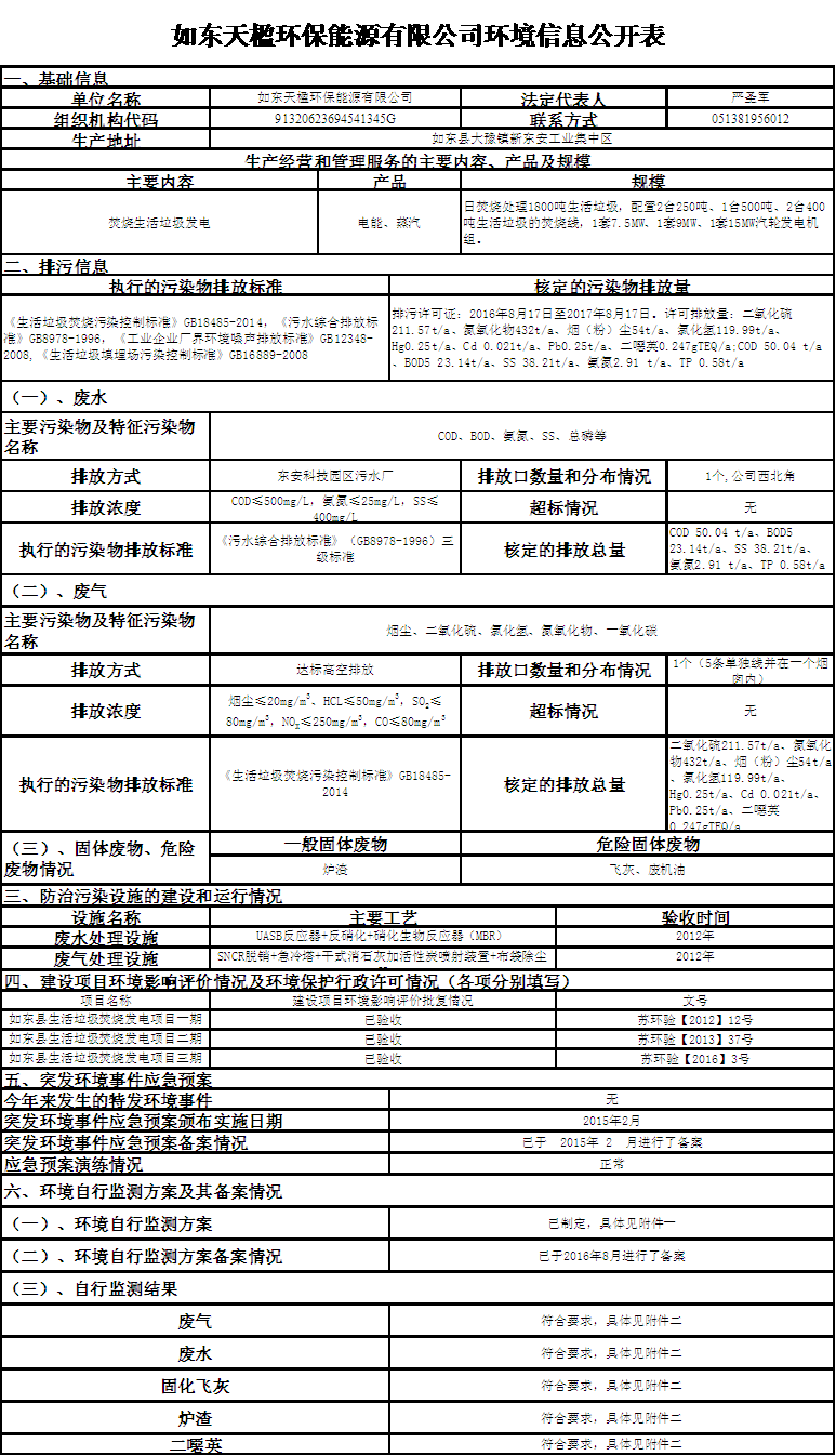 2016年上半年如東qy球友會(huì)環(huán)保能源有限公司環(huán)境監(jiān)測(cè)數(shù)據(jù)