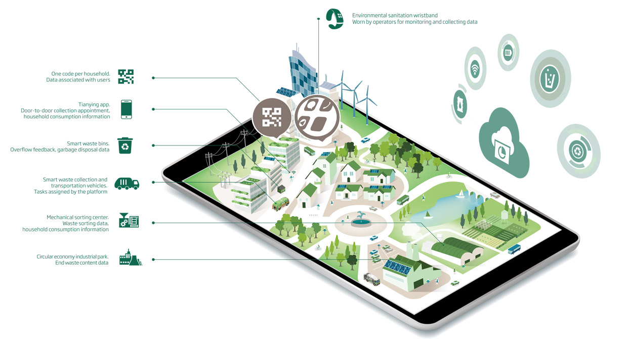Gathering the professional knowledge from numerous experts in urban services, CNTY has established its own creative intelligent urban service management system comprising of five parts, namely, waste classification, waste collection and transfer, environment cleaning, final disposal, and operations management. It serves different customers, and provides effective instructions and supervisions so as to realize the smart management of urban services. Based on multi-dimensional data such as demographic data, geographical conditions and economic status, the smart management system analyzes the real-time conditions of urban services in various regions at multiple levels, and develops targeted plans and operation schemes for the urban service sector in different cities according to the relevant indicator system.