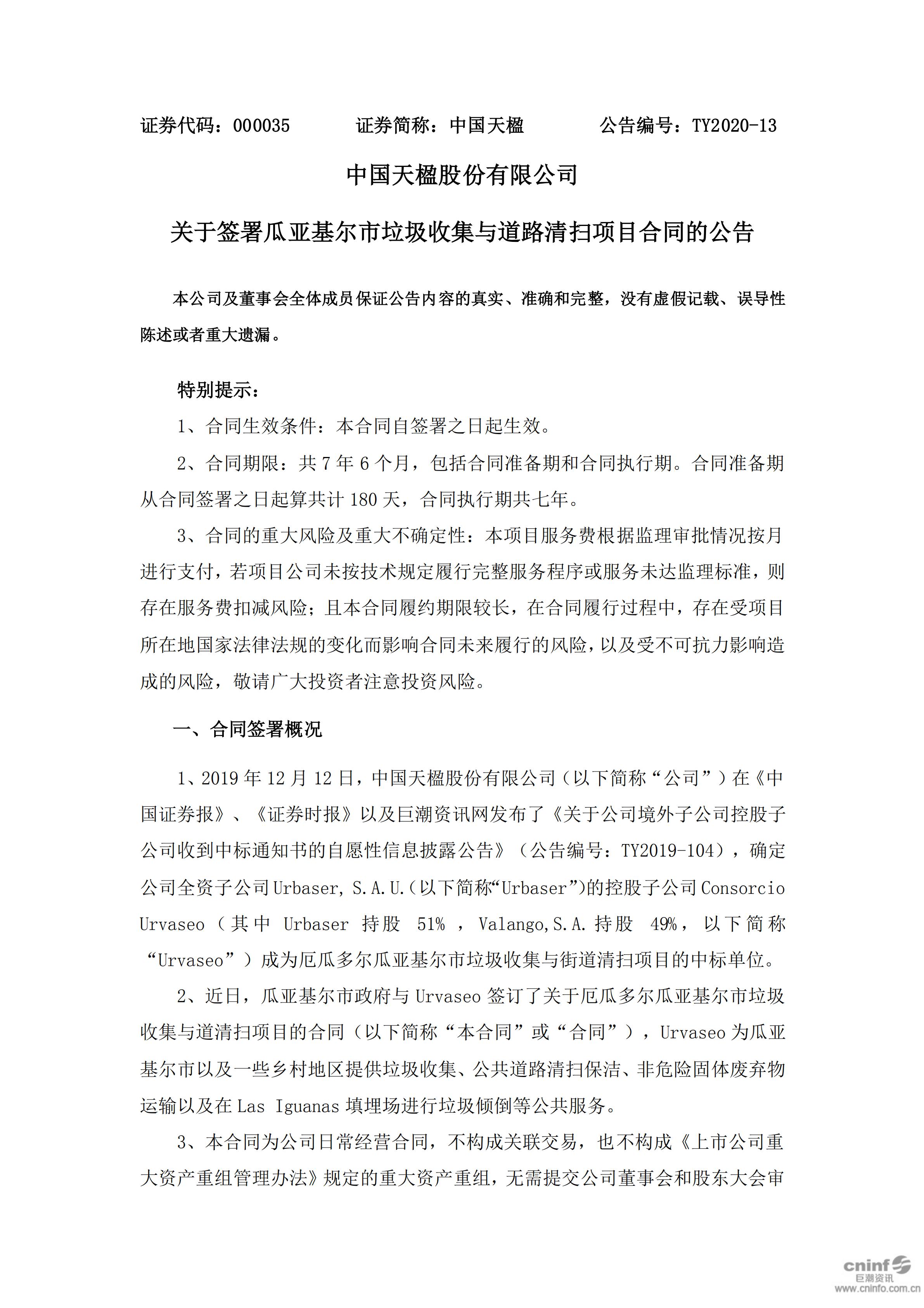 中國qy球友會股份有限公司關于簽署瓜亞基爾市垃圾收集與道路清掃項目合同的公告